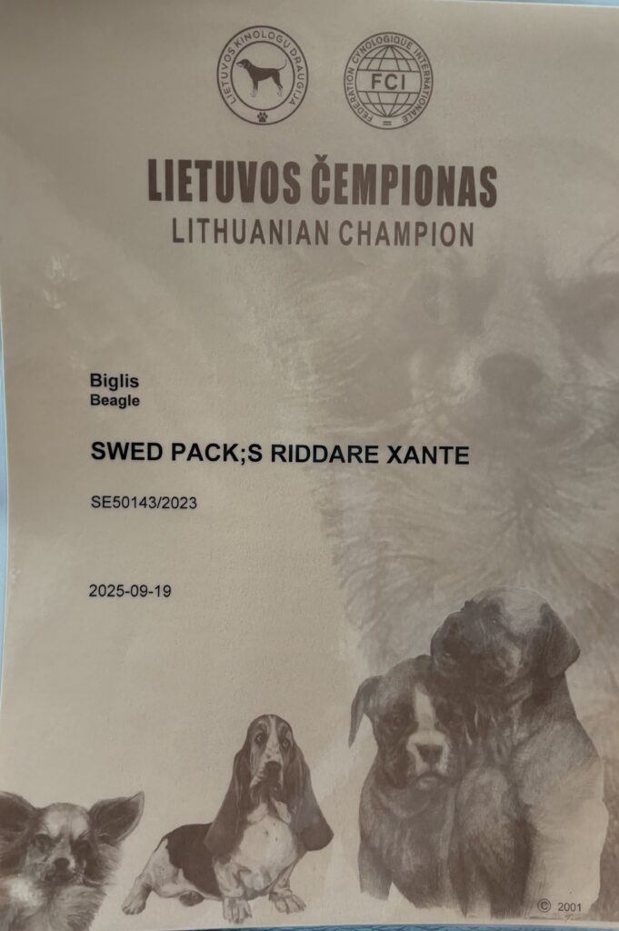 Molly (Swed Pack’s Riddare Xiomara) E CK BIR Lördag och E CK BIR Cacib på Söndag. Molly har Swed Pack´s med bibehållen avelsrätt. Ägare: Göte Karlström.
