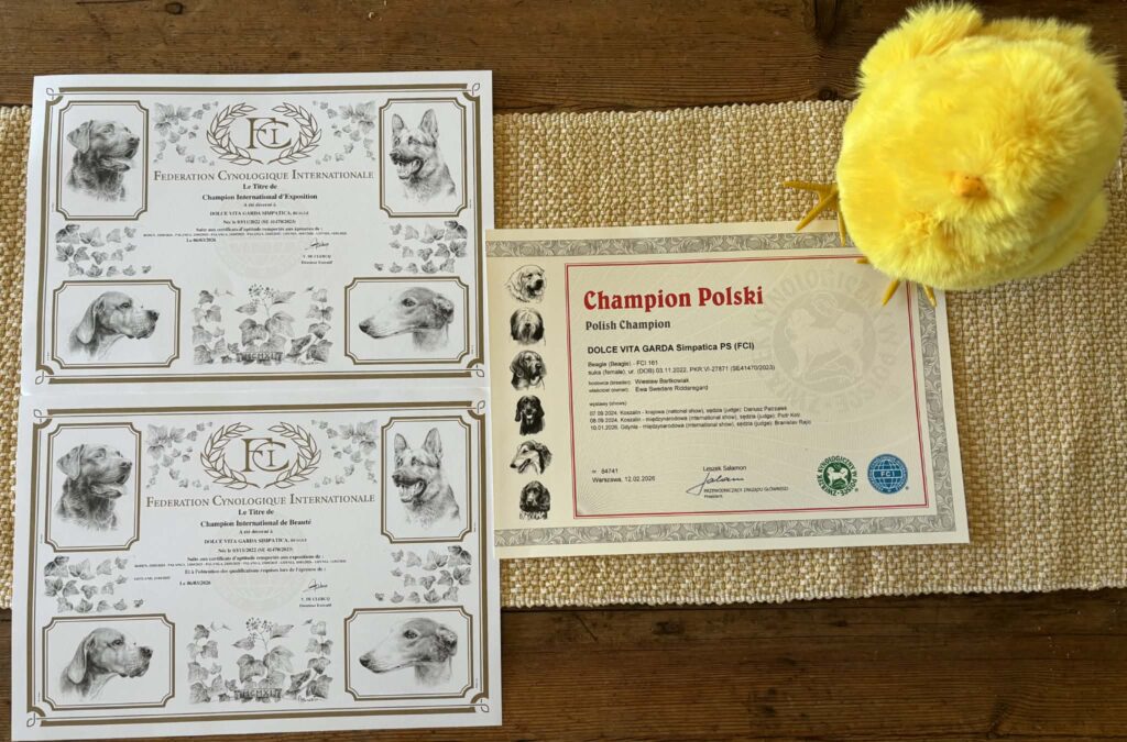 I dag kom bekräftelsen på att Gabi även nu kan lägga till titlarna C.I.E, C.I.B och Polsk Champion till sina tidigare titlar.