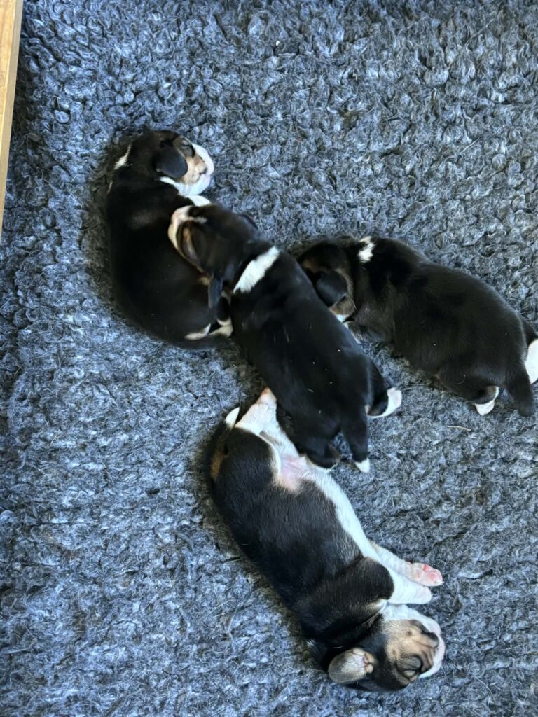 Som vi har väntat på detta den 14 april kom valparna. Det är 16 år sen vi frös ner sperma på Nixon och nu äntligen var det dags att använda dem tillsammans med Gabi.